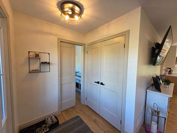 With a true white to reflect light from the ceiling, and a gentle, warm tinted white for the walls, and beautiful creamed beige to accent the doors and trim, this homeowner knew exactly what they wanted.
